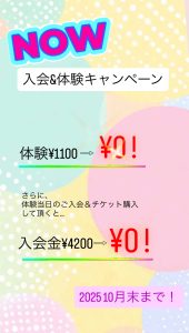 只今 体験&入会キャンペーン実施中!!2025年10月末まで。